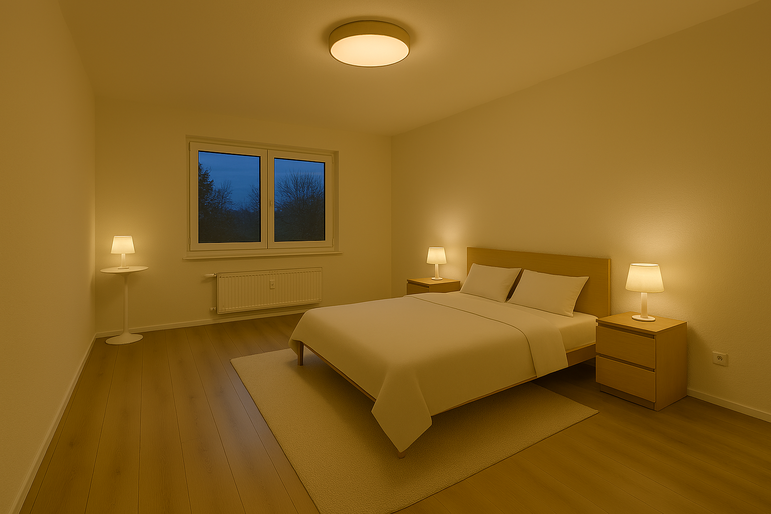 - Laminat und Raufasertapete in den Wohnräumen