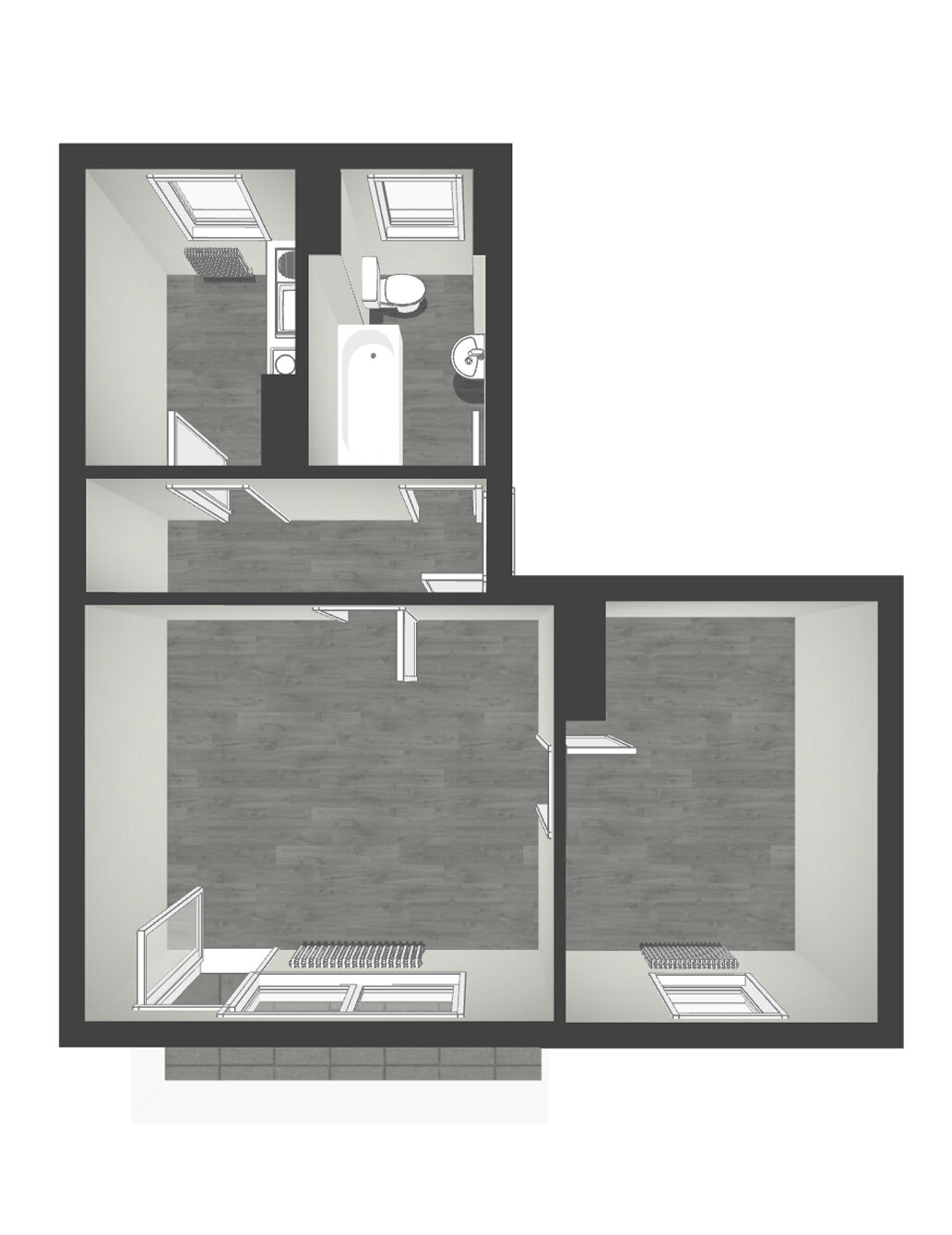 Die 3-Zimmer-Wohnung verteilt sich auf ca. 48 m²