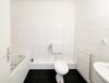 - Anthrazite Boden- und weiße Wandfliesen im Bad