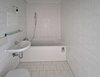 - Weiße Boden- und weiße Wandfliesen im Bad