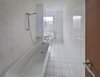 - Weiße Boden- und weiße Wandfliesen im Bad