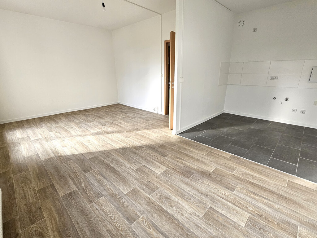- PVC- Bodenbelag und Raufasertapete in den Wohnräumen