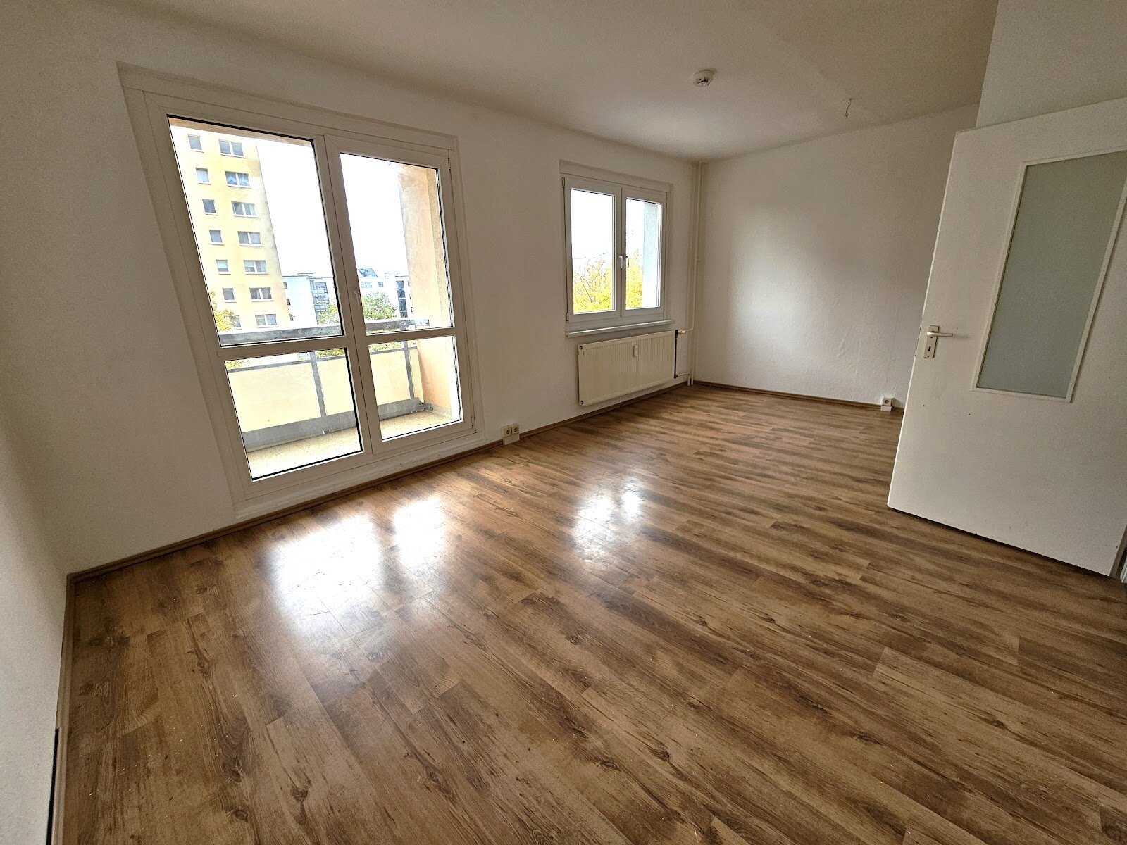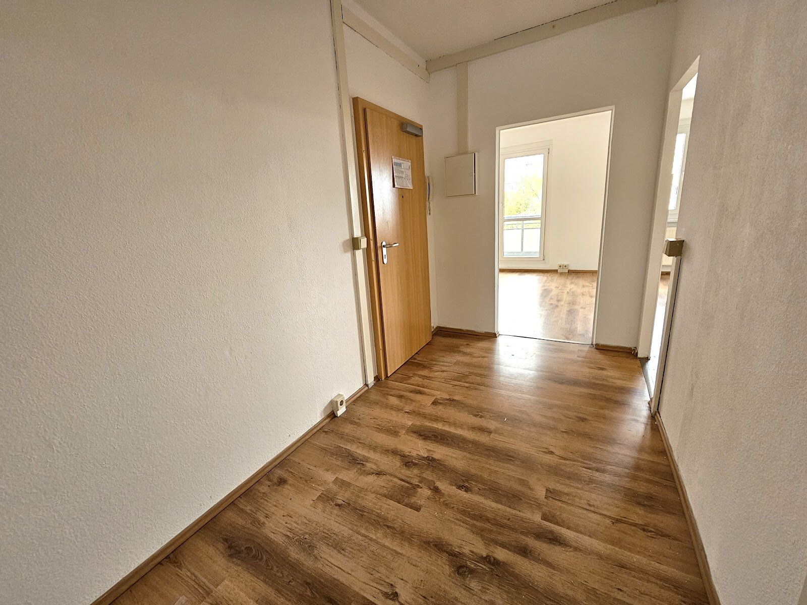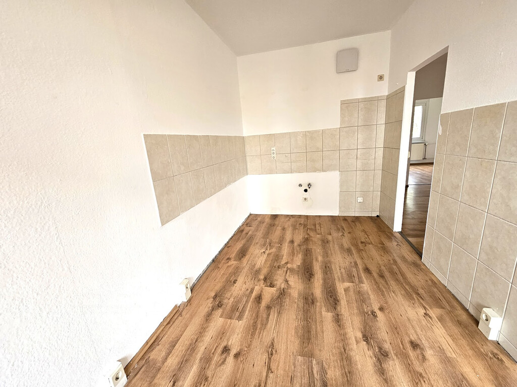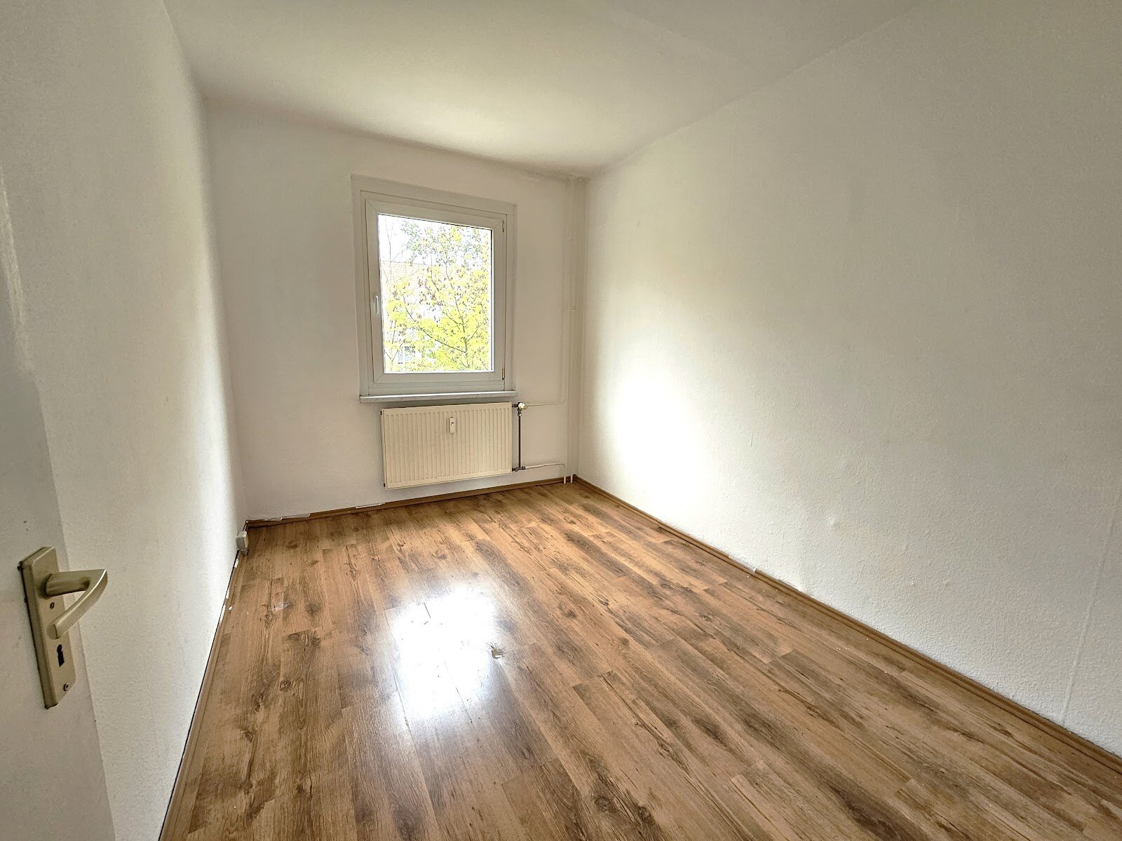- Laminat- Bodenbelag und Raufasertapete in den Wohnräumen