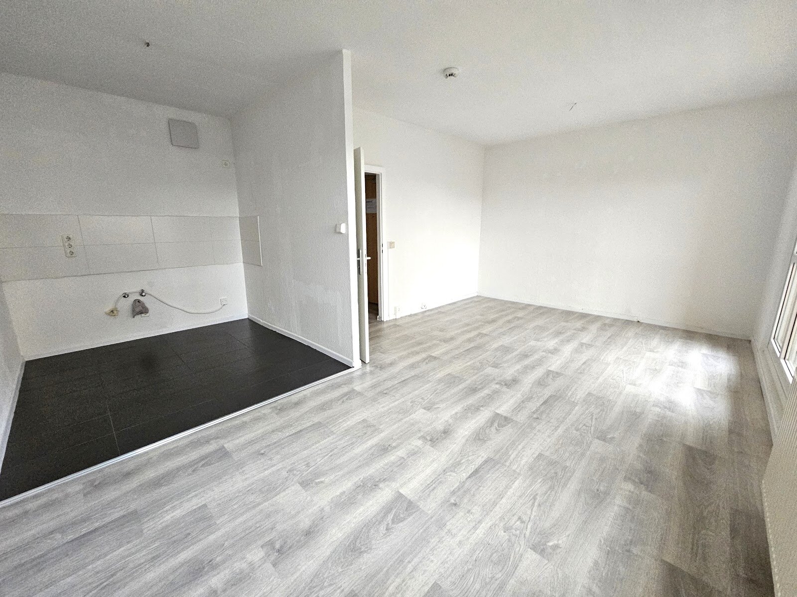 - PVC- Bodenbelag und Raufasertapete in den Wohnräumen