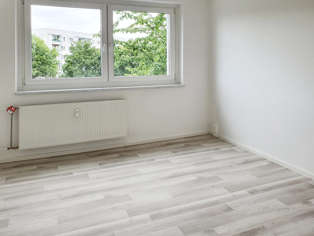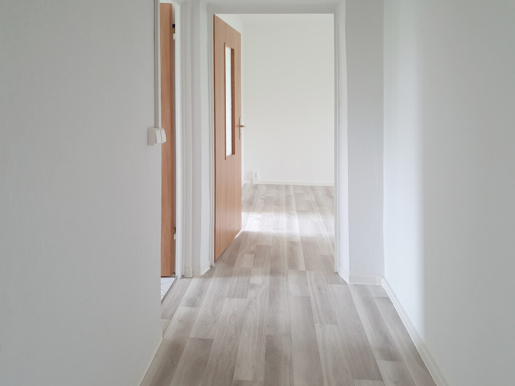 - PVC- Bodenbelag und Raufasertapete in den Wohnräumen