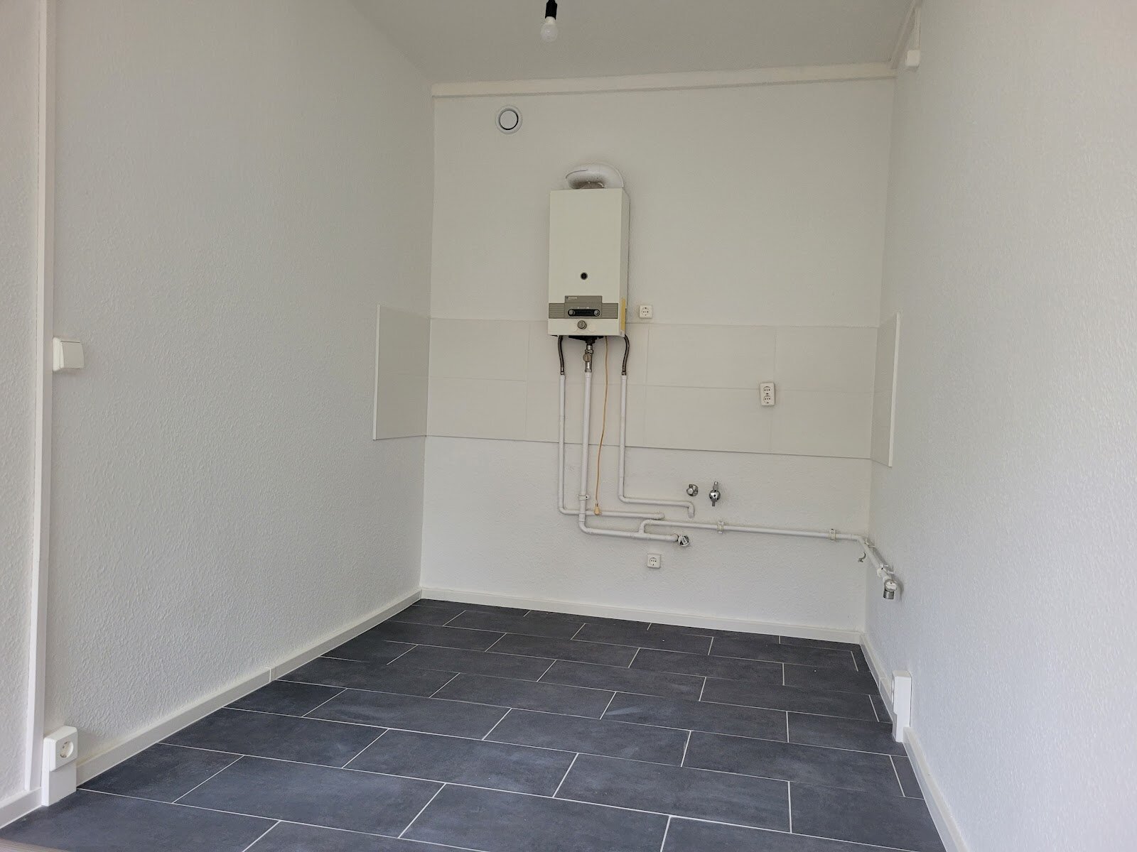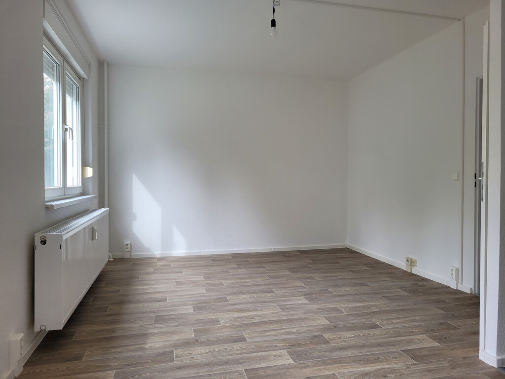- PVC- Bodenbelag und Raufasertapete in den Wohnräumen
