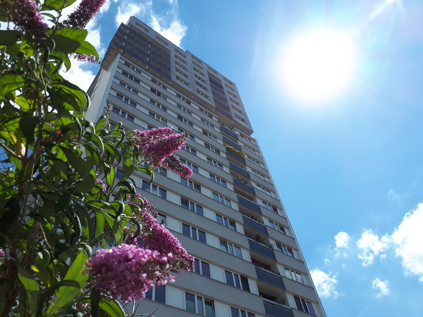 Das 20-stöckige Wohnhaus wurde 1983 erbaut - In der 19. Etage liegt Ihre neue Wohnung. Ein Personenaufzug bringt Sie bequem in die gewünschte Etage (Achtung, die Wohnung liegt NICHT auf Fahrstuhletage).