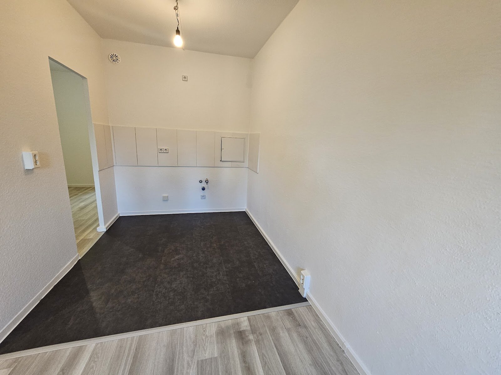 - PVC- Bodenbelag und Raufasertapete in den Wohnräumen