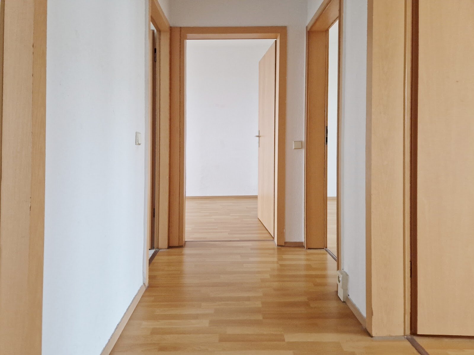 - Laminat- Bodenbelag und Raufasertapete in den Wohnräumen