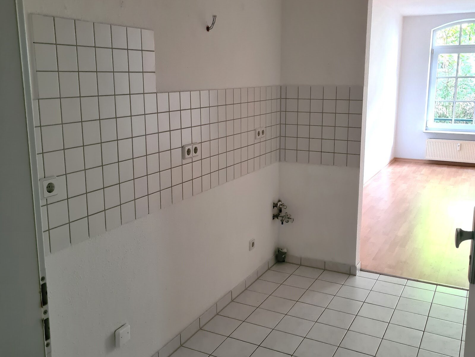 - Fliesen Boden- und weiße Wandfliesen in der Küche