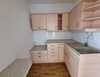 - PVC- Bodenbelag- und weiße Wandfliesen in der Küche