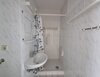 - PVC- Bodenbelag- und weiße Wandfliesen in der Küche