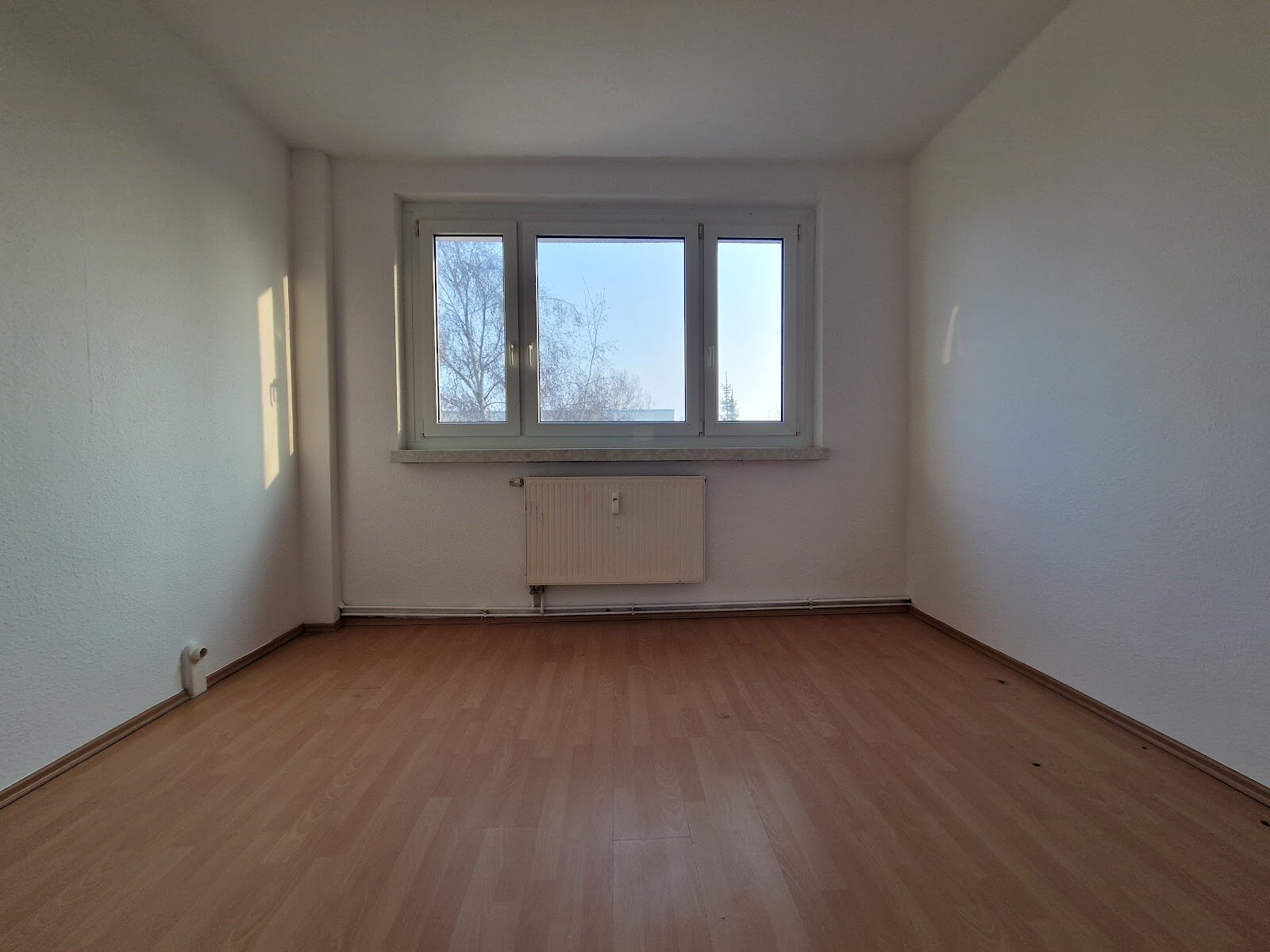 - Laminat - Bodenbelag und Raufasertapete in den Wohnräumen