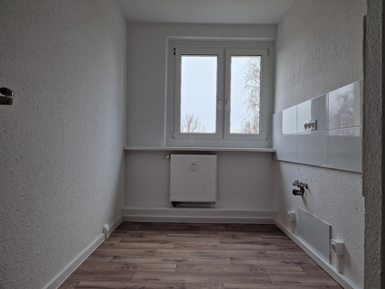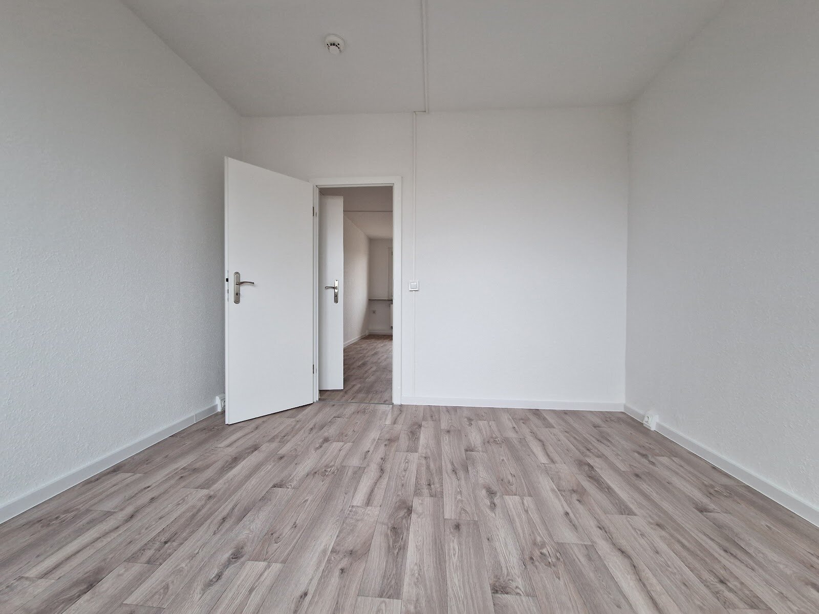 - Laminat- Bodenbelag und Raufasertapete in den Wohnräumen
