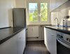 - Anthrazite Boden- und weiße Wandfliesen in der Küche