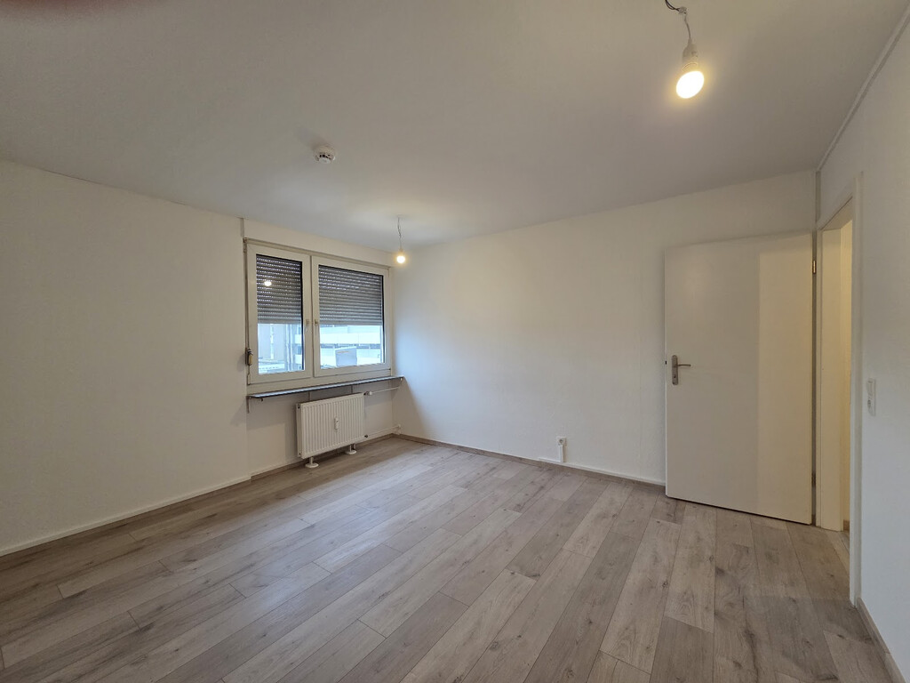 - Laminat- Bodenbelag und Raufasertapete in den Wohnräumen