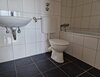 - Anthrazite Boden- und weiße Wandfliesen im Bad