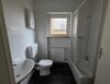 - Anthrazite Boden- und weiße Wandfliesen im Bad