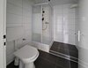 - Anthrazite Boden- und weiße Wandfliesen im Bad