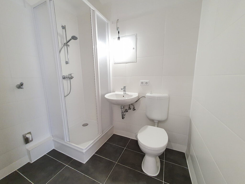 - Modernes Bad mit Dusche und Waschmaschinenanschluss – praktisch & schick in Anthrazit und Weiß