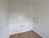 - PVC- Bodenbelag und weiße Wandfliesen in der Küche