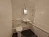 - Anthrazite Boden- und weiße Wandfliesen im Bad