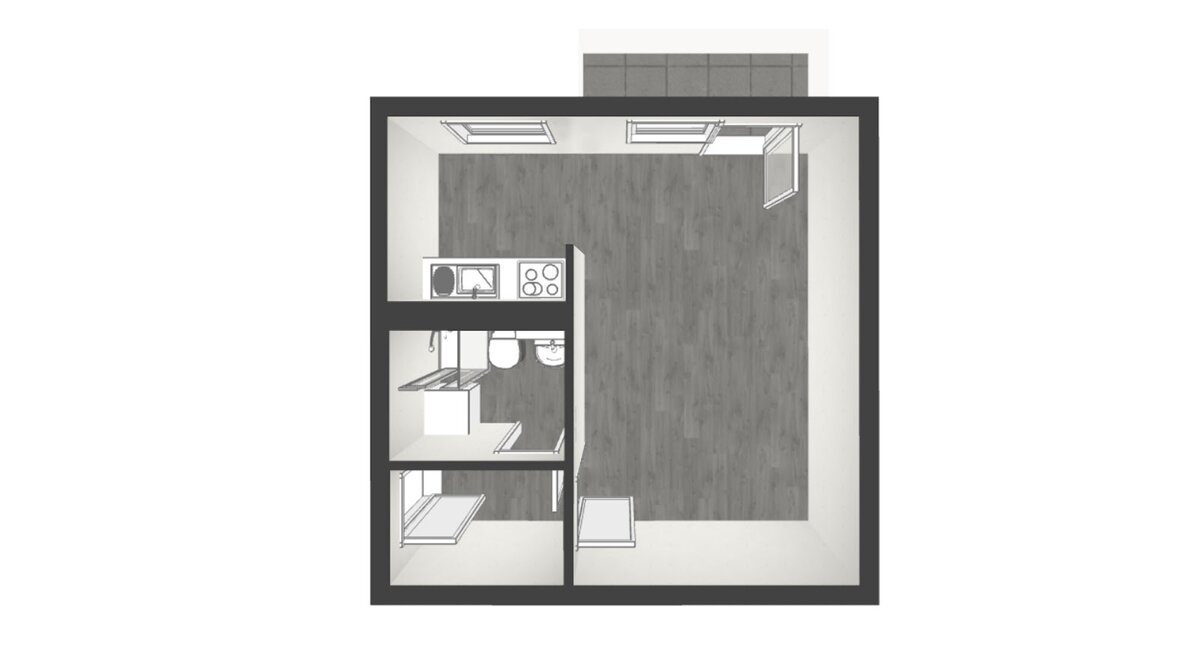 Die 1-Zimmer-Wohnung verteilt sich auf ca. 35 m² clever genutzt – perfekt für Minimalisten, Pendler oder den ersten eigenen Rückzugsort.