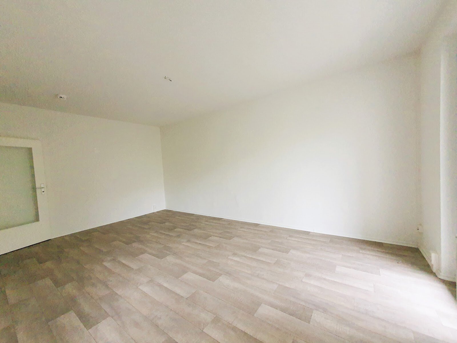 - Wohnbereich mit PVC-Boden und Raufasertapete – schlicht, pflegeleicht, bereit für Ihre Einrichtungsideen