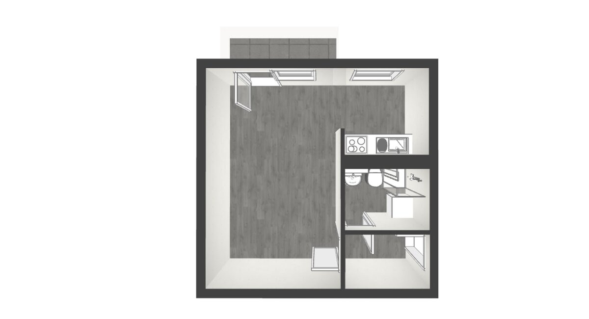 Die 1-Zimmer-Wohnung verteilt sich auf ca. 35 m² clever genutzt – perfekt für Minimalisten, Pendler oder den ersten eigenen Rückzugsort.