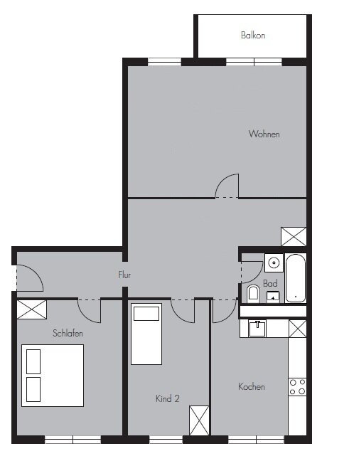 Die 3-Zimmer-Wohnung verteilt sich auf ca. 90 m²