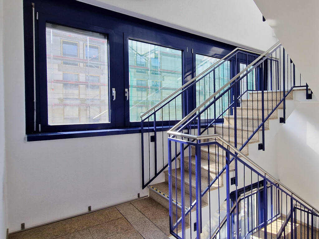 Das moderne 5-geschossige Bürogebäude wurde 1995 erbaut und bietet alles, was das Arbeitsleben angenehm macht: großzügige, clever geschnittene Räume, in denen sich Arbeiten fast wie Freizeit anfühlt. Der Aufzug bringt Sie und Ihre Gäste ganz entspannt in die passende Etage – kein Stufen-Marathon nötig.