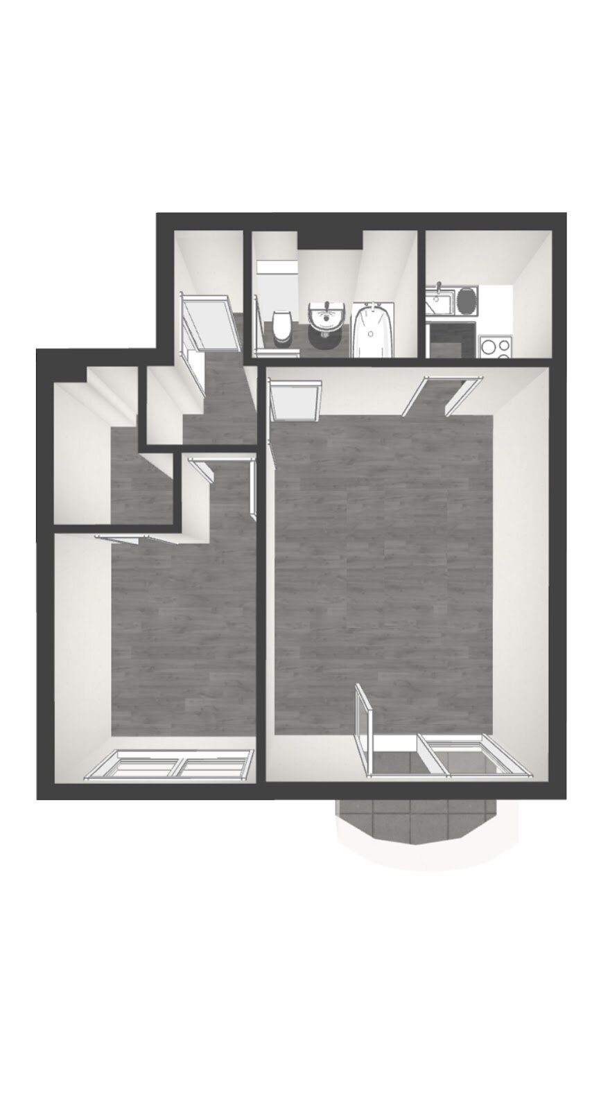 Die 2-Zimmer-Wohnung verteilt sich auf ca. 48 m² clever genutzt – perfekt für Minimalisten, Pendler oder den ersten eigenen Rückzugsort.