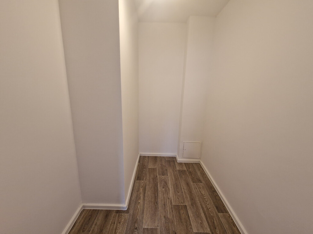 - Wohnbereiche mit PVC-Bodenbelag und weißer Raufasertapete – schlicht, pflegeleicht, bereit für Ihre Einrichtungsideen