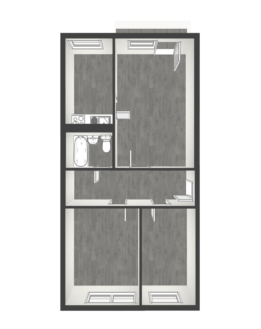 Die 3-Zimmer-Wohnung verteilt sich auf ca. 70 m²