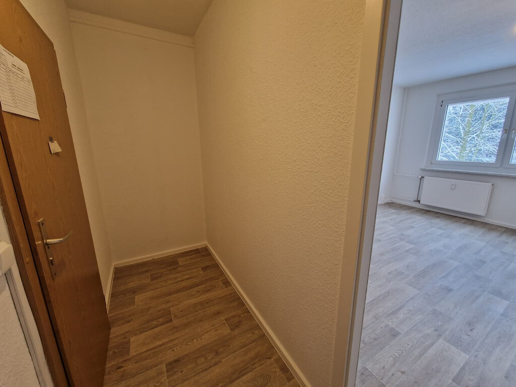 - PVC- Bodenbelag und Raufasertapete in den Wohnräumen