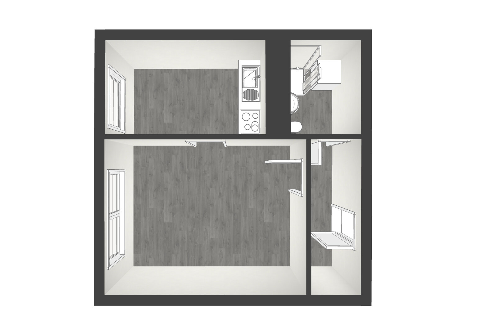 Die 1-Zimmer-Wohnung verteilt sich auf ca. 32 m² clever genutzt – perfekt für Minimalisten, Pendler oder den ersten eigenen Rückzugsort.