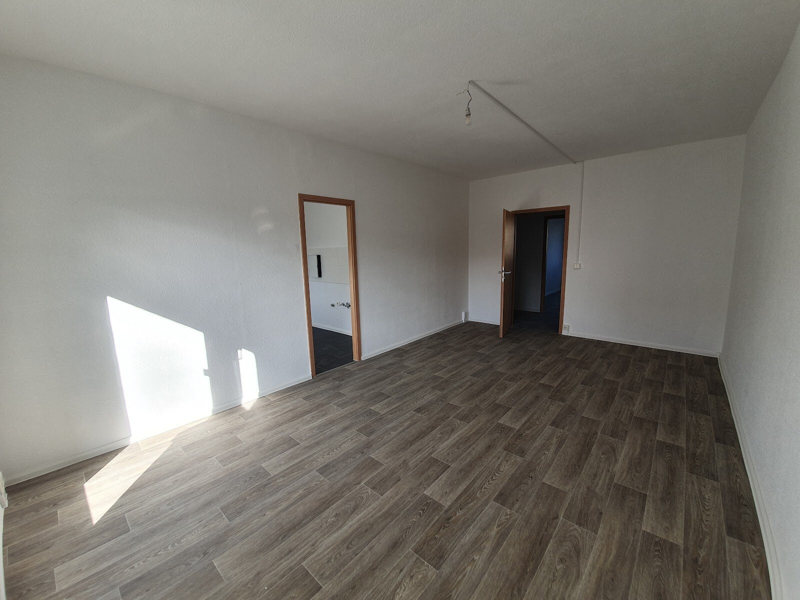 • Geräumiger Wohnbereich mit pflegeleichtem PVC-Bodenbelag und Raufasertapete – neutral gehalten und bereit für Ihre Einrichtungsideen