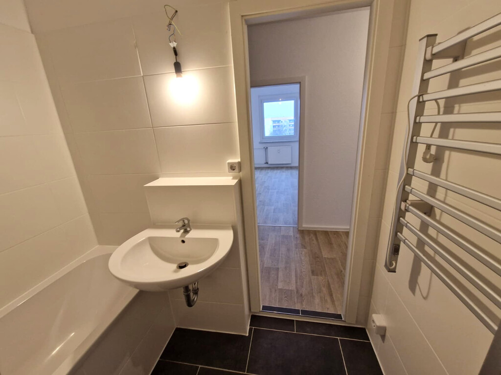 - Badezimmer mit Badewanne und Waschmaschinenanschluss