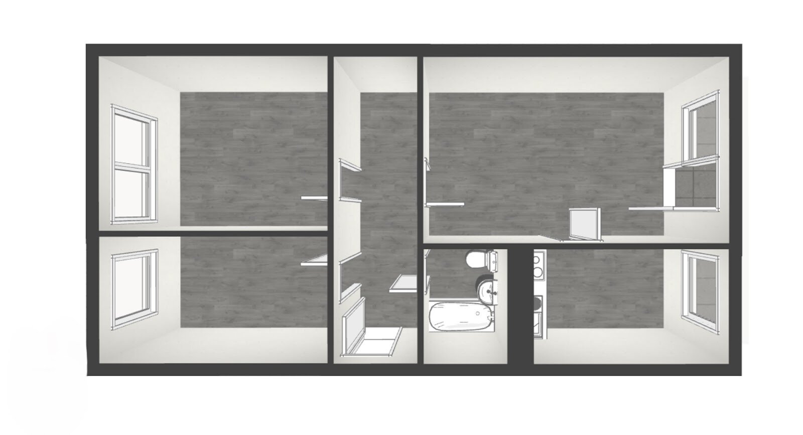 - PVC- Bodenbelag und Raufasertapete in den Wohnräumen