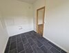 - Anthrazite Boden- und weiße Wandfliesen in der Küche