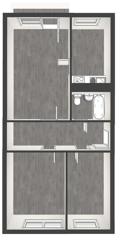 Die 3-Zimmer-Wohnung verteilt sich auf ca. 70 m²