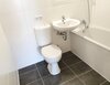 - Anthrazite Boden- und weiße Wandfliesen im Bad
