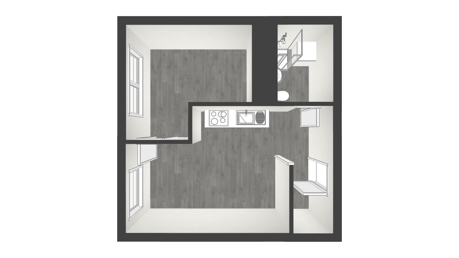 Die 2-Zimmer-Wohnung verteilt sich auf ca. 32 m² clever genutzt – perfekt für Minimalisten, Pendler oder den ersten eigenen Rückzugsort.