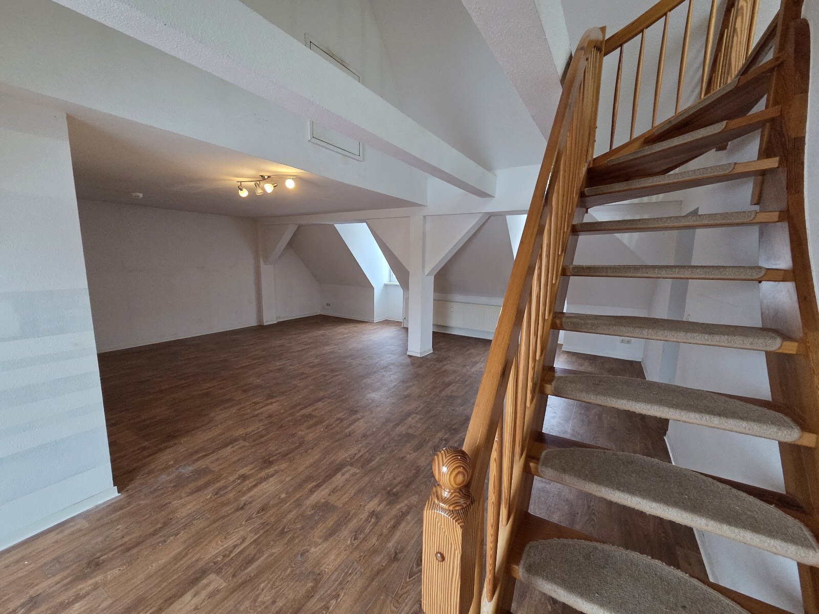- Laminat- Bodenbelag und Raufasertapete in den Wohnräumen