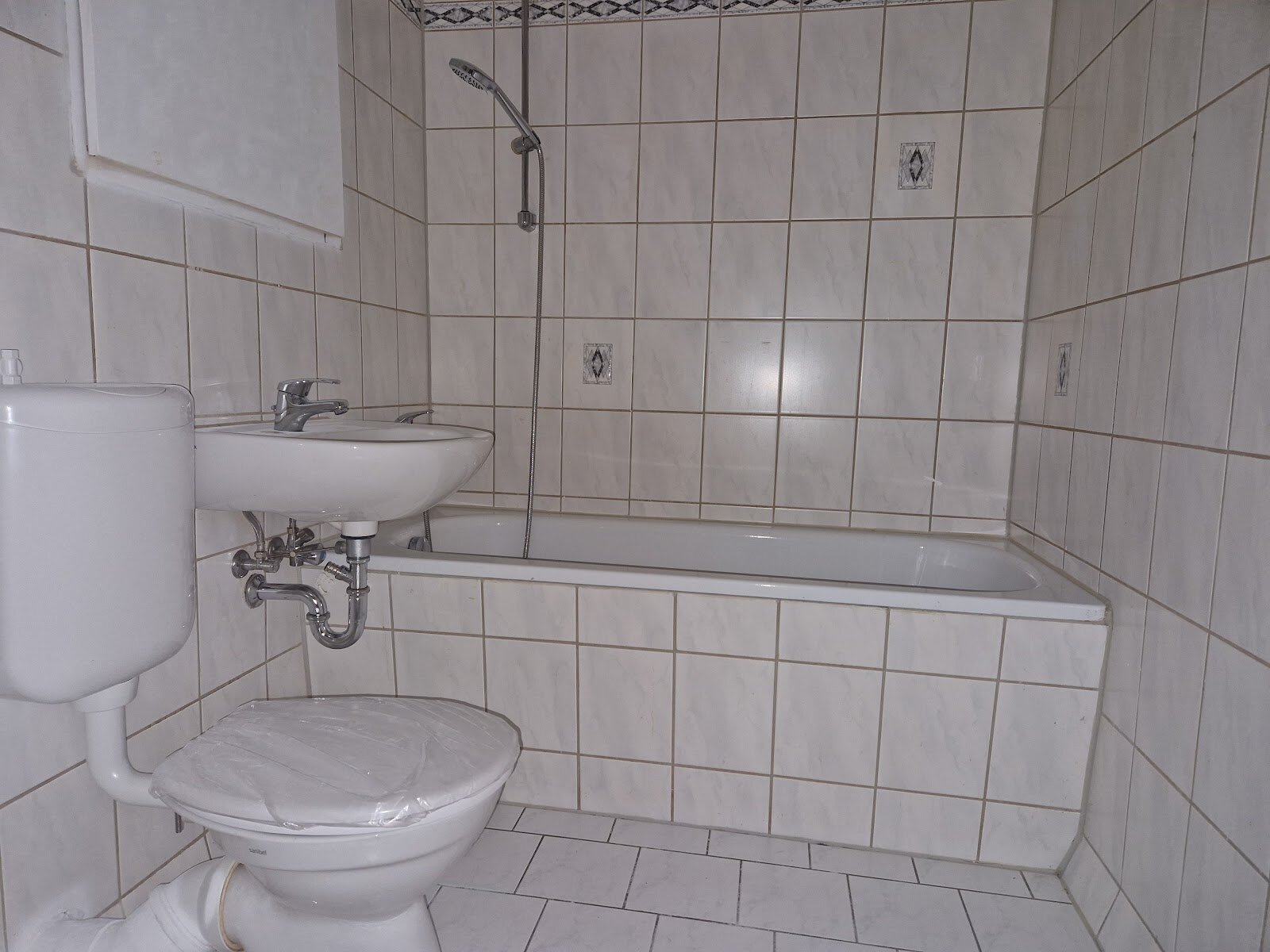 - Weiße Boden - und weiße Wandfliesen im Bad