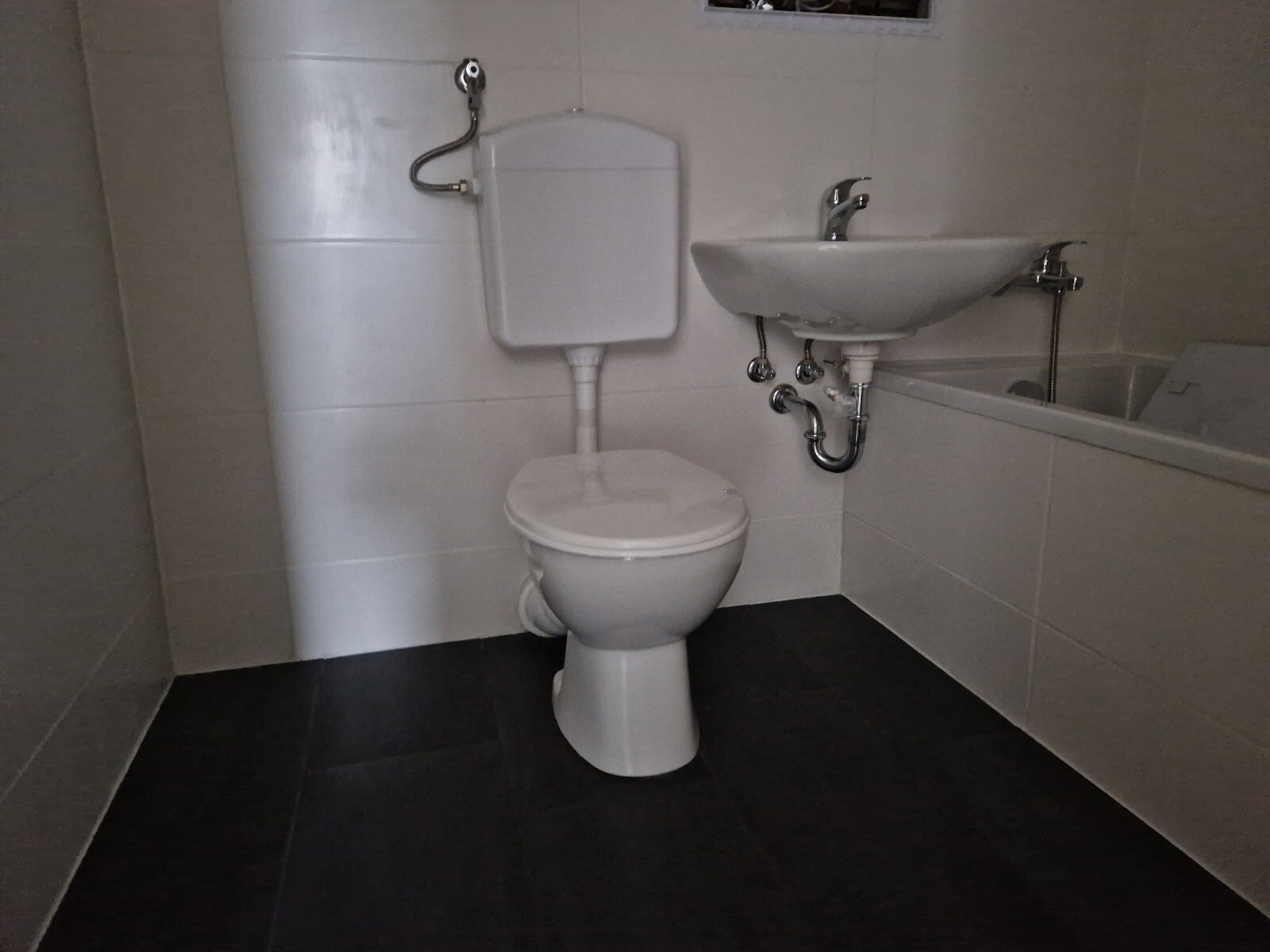 - Anthrazite Boden- und weiße Wandfliesen im Bad
