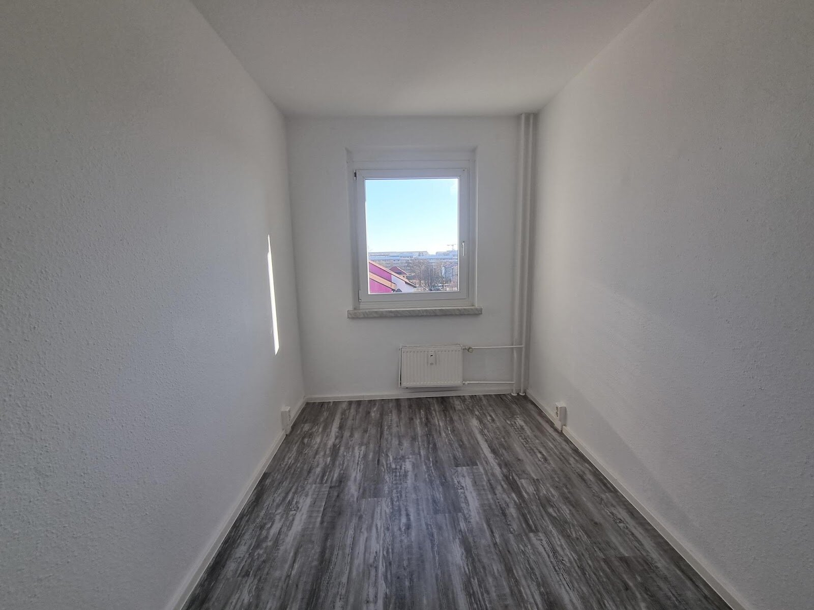- Laminat- Bodenbelag und Raufasertapete in den Wohnräumen