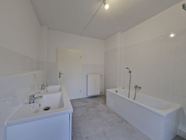 - Geräumiges Tageslichtbad mit Dusche, Badewanne sowie 2 Waschtischen inkl. Unterschrank