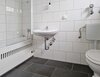 - Anthrazite Boden- und weiße Wandfliesen im Bad
