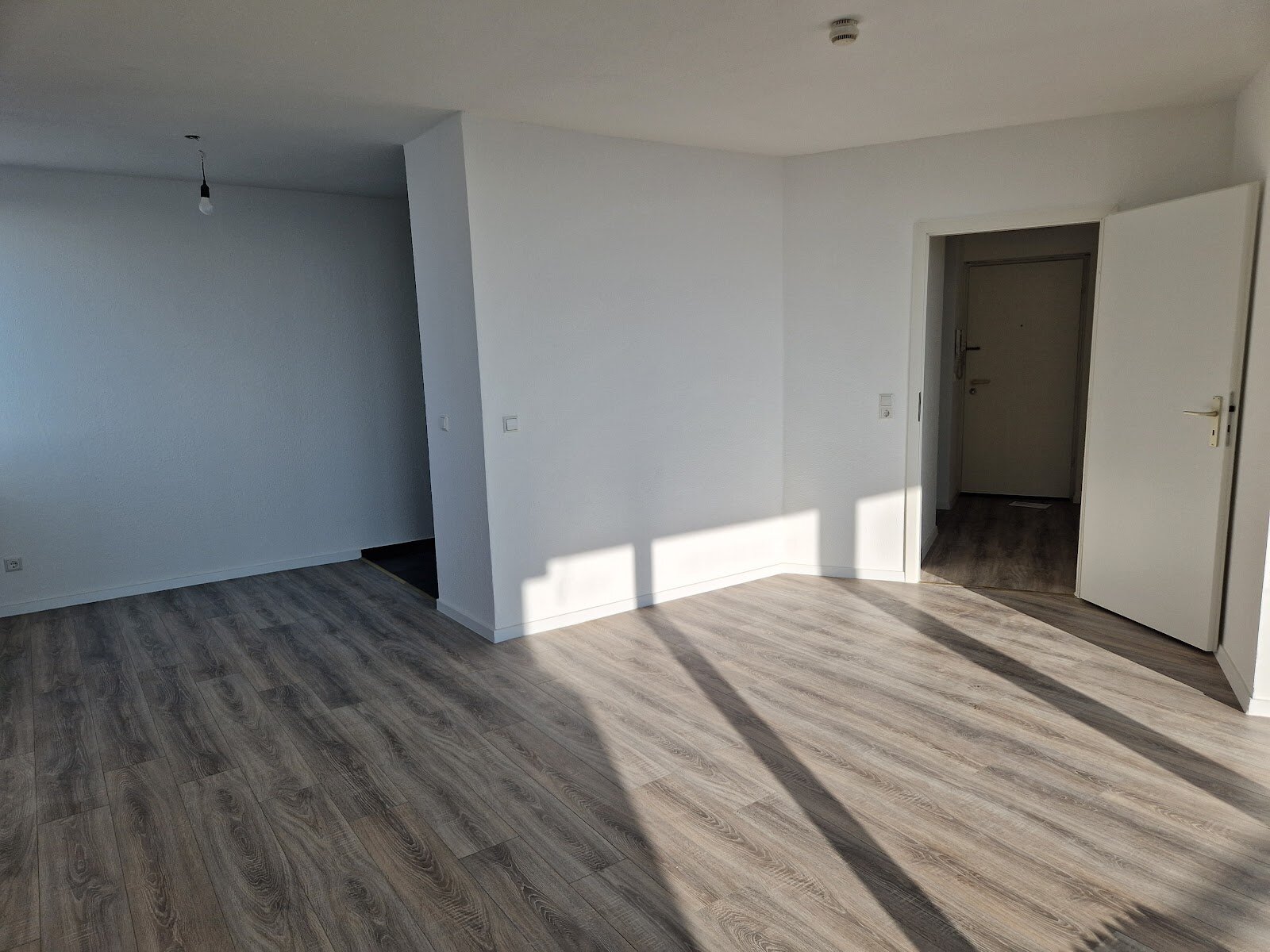 - Laminat- Bodenbelag und Raufasertapete in den Wohnräumen